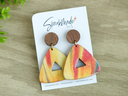 Colorful Triangle Statement Earrings - Yellow/Orange