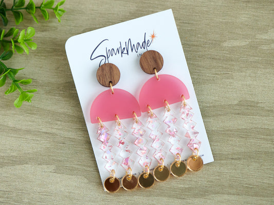 Frosted Summer Acrylic & Wood Earrings - Teal