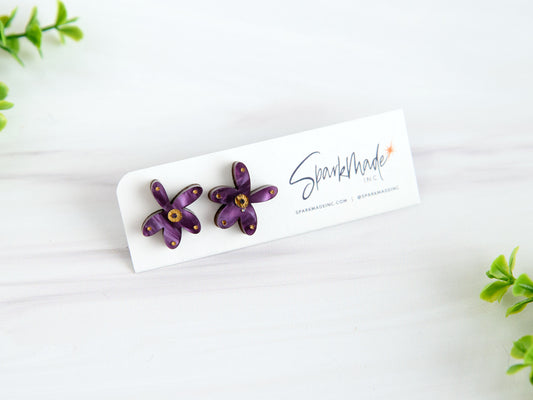 Fantasy Flower Stud Earrings Purple