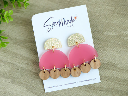 Color Duo Hand Painted Stud Earrings Pink/Yellow