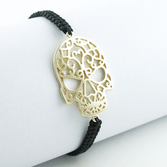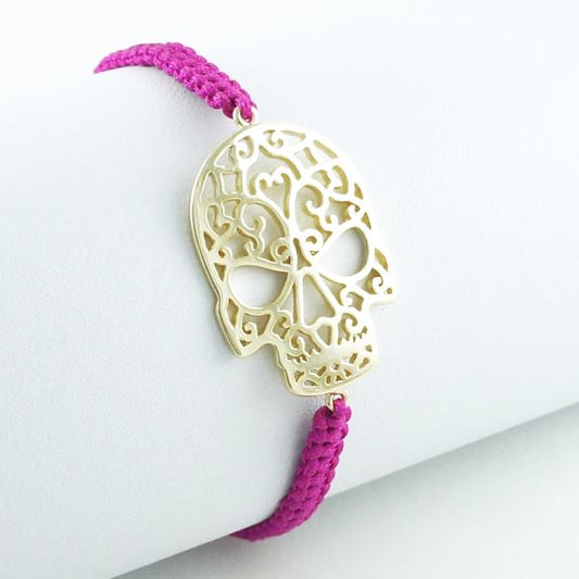 Skull Gold Plated Braided Bracelet - Hot Pink