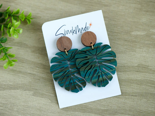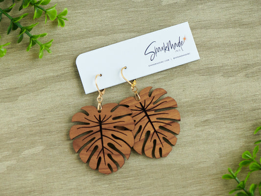 Cherry Hardwood Monstera Earrings