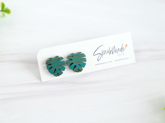 Brushed Monstera Stud Earrings
