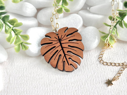 Cherry Hardwood Monstera Necklace