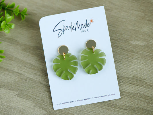 Small Frosted Monstera Earrings