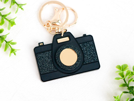 Personalized Fashion Glitter Acrylic Camera Keychain Bag Tag Accessory