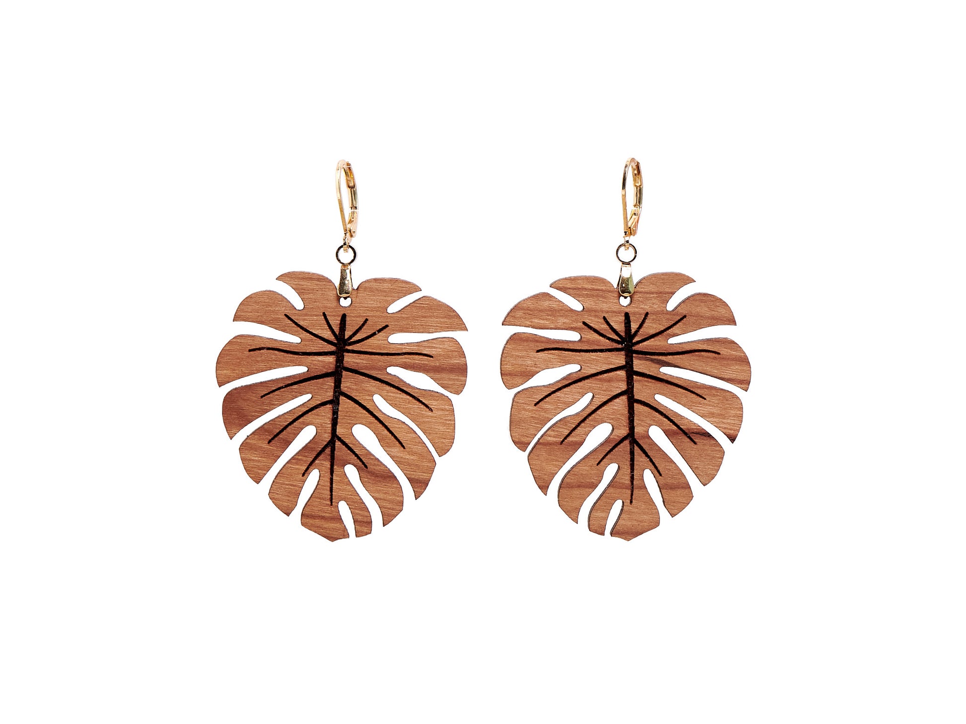 Cherry Hardwood Monstera Earrings