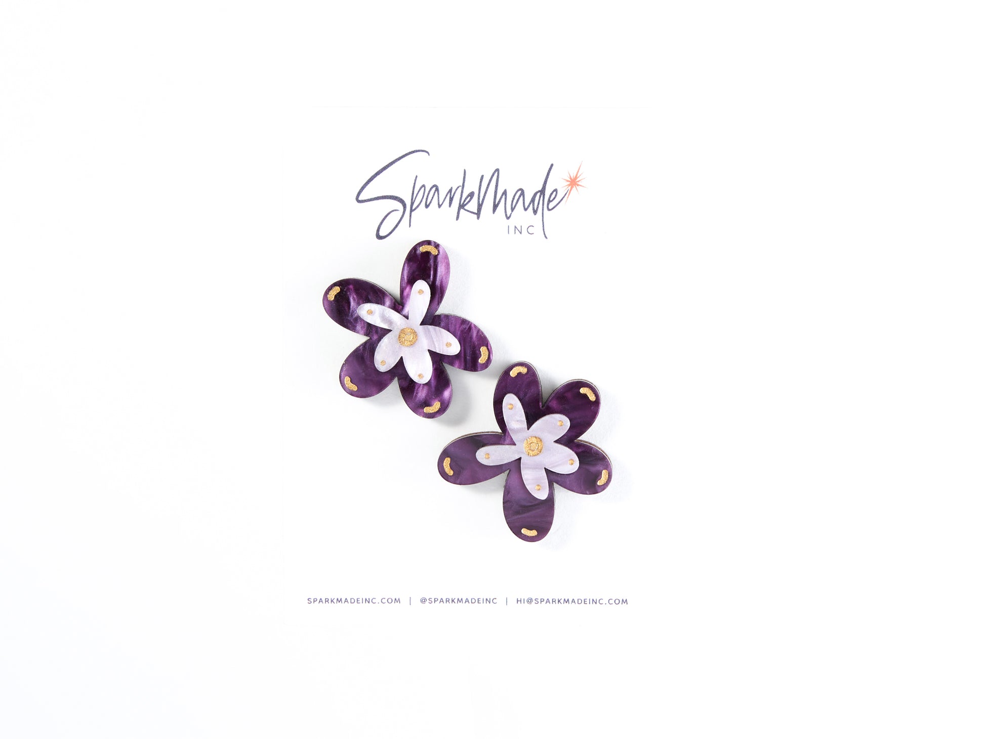 Whimsical and bold, our Fantasy Flower Earrings are crafted with layered premium acrylic in vibrant floral shapes, backed with rich walnut wood for added depth and elegance. Finished with 14K gold-plated studs, these statement earrings bring a touch of fantasy to your everyday style.