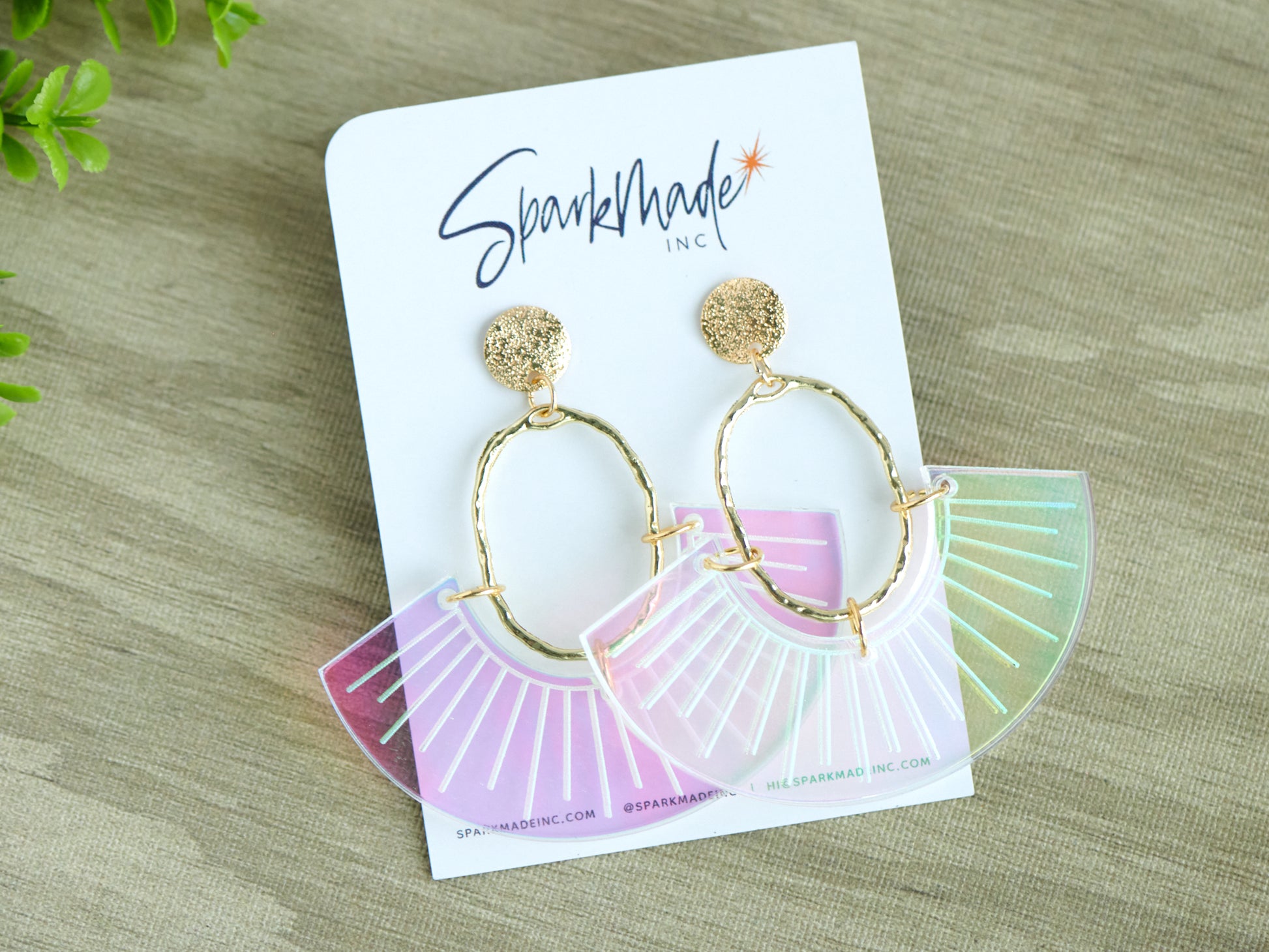 These stunning earrings are a true work of art, a breathtakingly beautiful accessory that captures the essence of magic and enchantment. Featuring a mesmerizing iridescent shine that captures the light beautifully and will have more than one hypnotized. The iridescent shine of the acrylic creates a multi-dimensional effect, giving the earrings a mystical and dreamy feeling that is sure to enchant anyone who sees them.