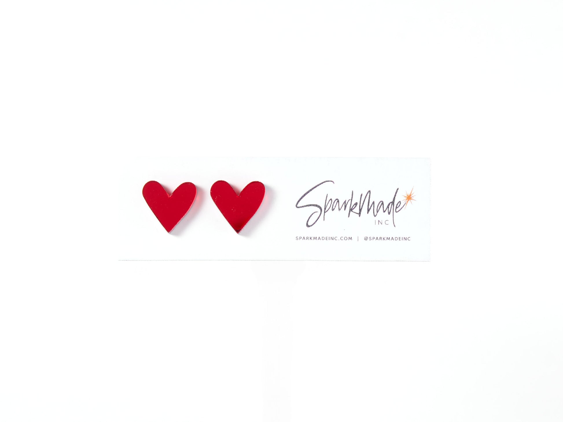 Heart Acrylic Stud Earrings - Red Mirror