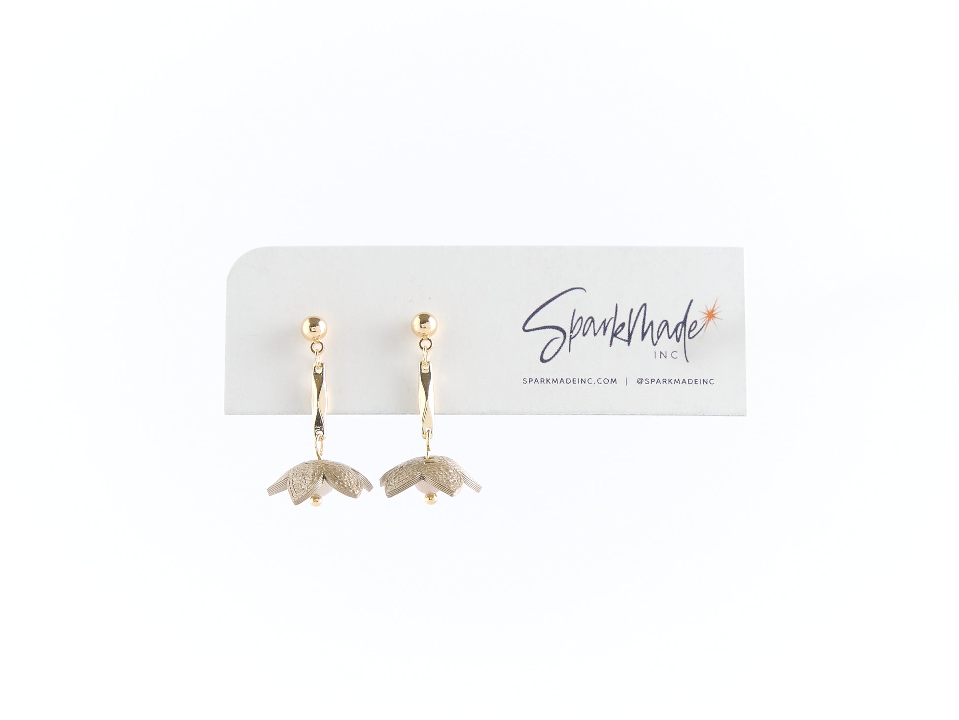The Kaia Single Drop Earrings combine cutting-edge 3D printing technology with natural stone beads and luxurious 14k gold plated embellishments and studs. This fusion results in lightweight delicate earrings that offer both contemporary style and timeless sophistication, perfect for enhancing any refined collection.