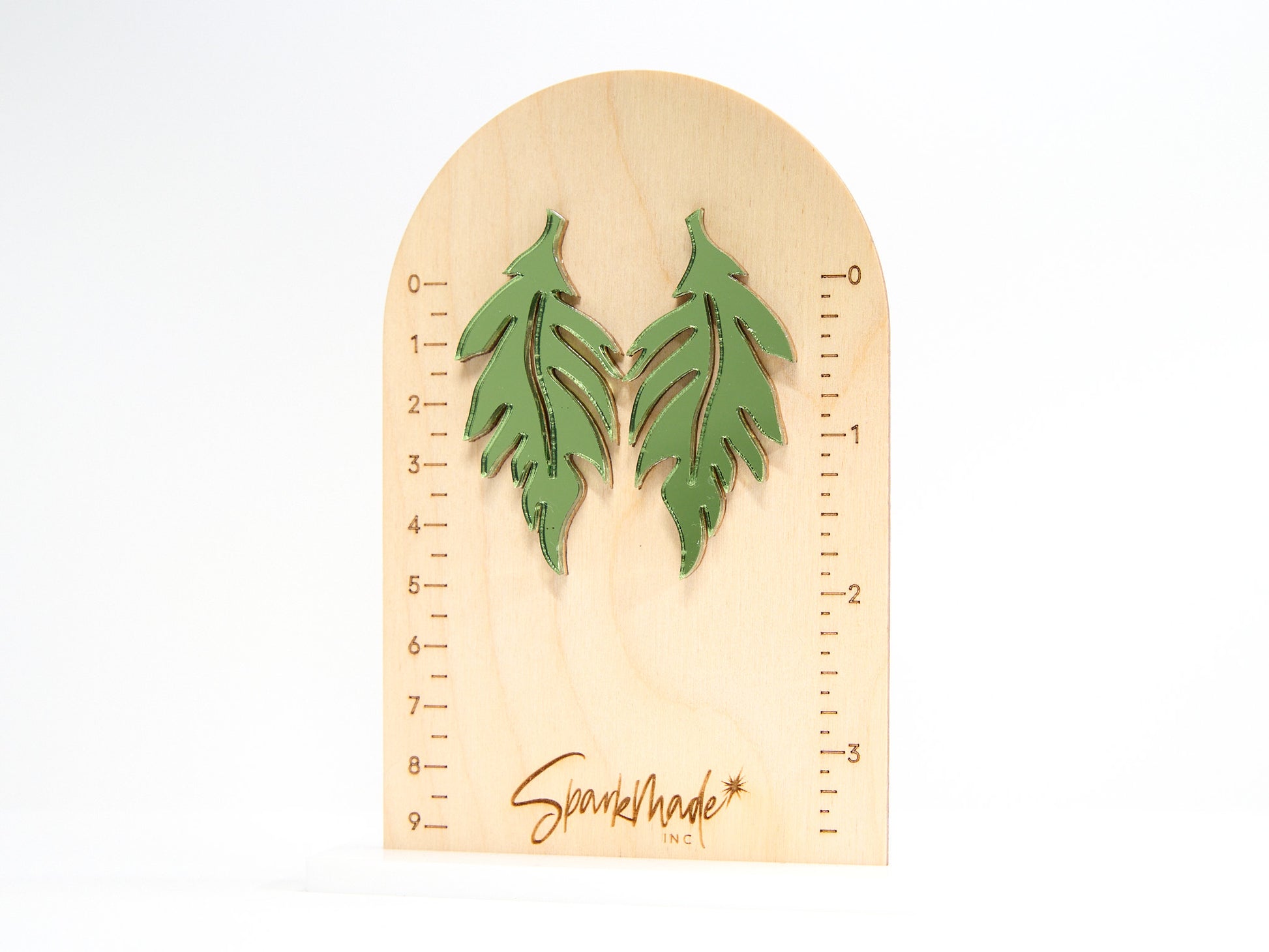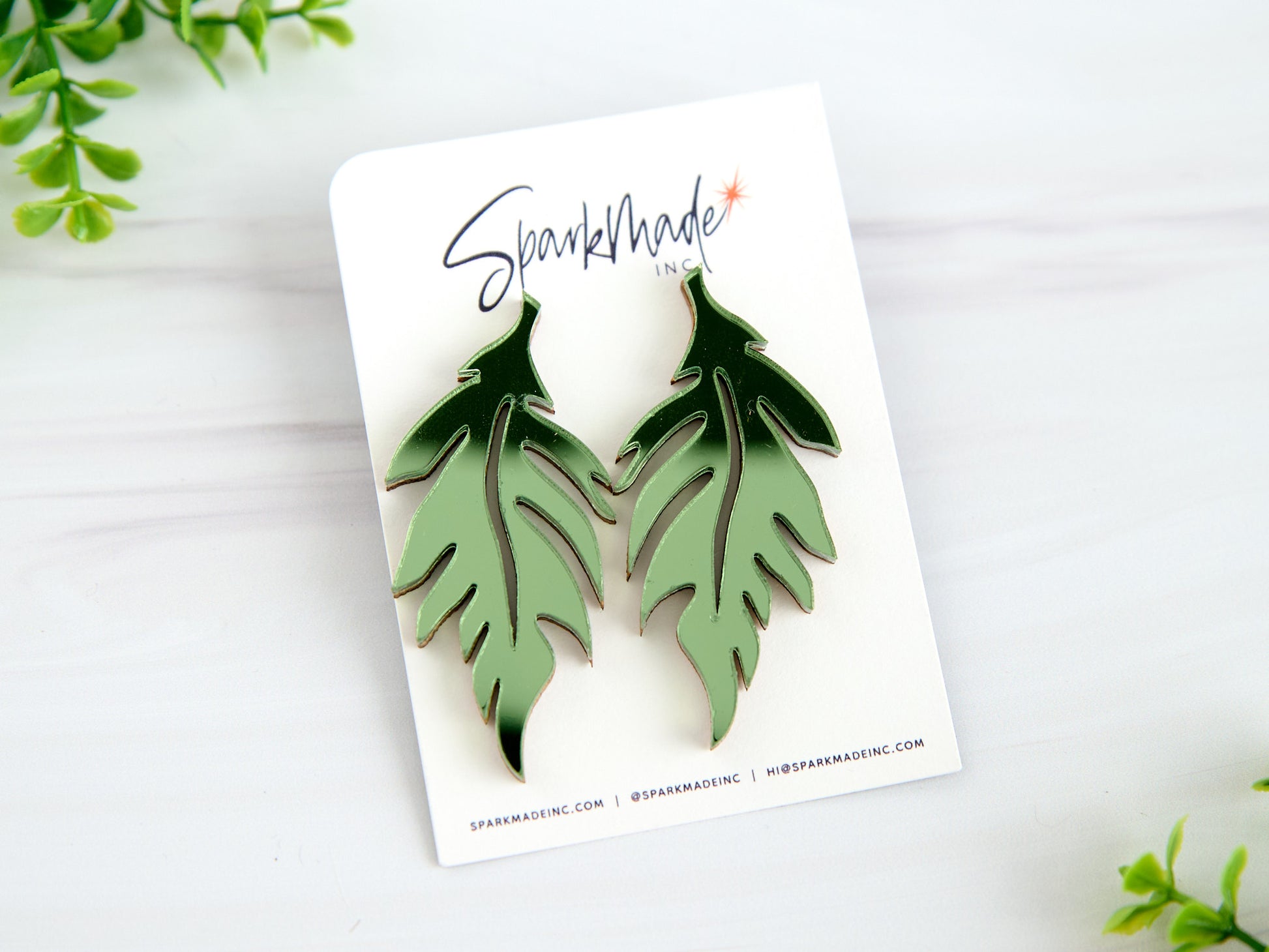 Crafted from mirror acrylic, these leaf-shaped earrings combine modern design with a reflective finish that captures light beautifully. Their lightweight construction ensures comfortable wear, while the unique shape adds a sophisticated accent to any outfit. Ideal for those seeking a contemporary accessory that merges nature-inspired elegance with striking shine.