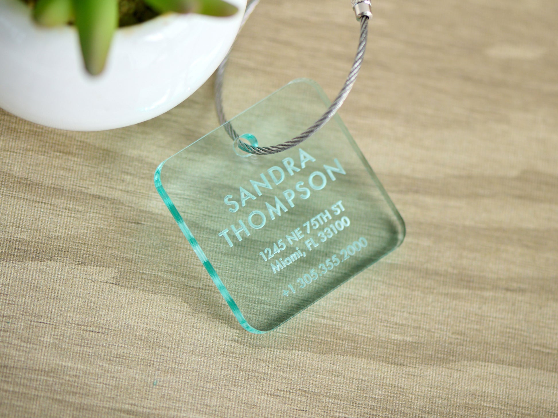 Overall, the Personalized Acrylic Luggage Tag is a must-have for anyone who wants to travel safely and in style. With its sturdy construction, discreet engraving, and eye-catching design, you'll never have to worry about losing your luggage again.