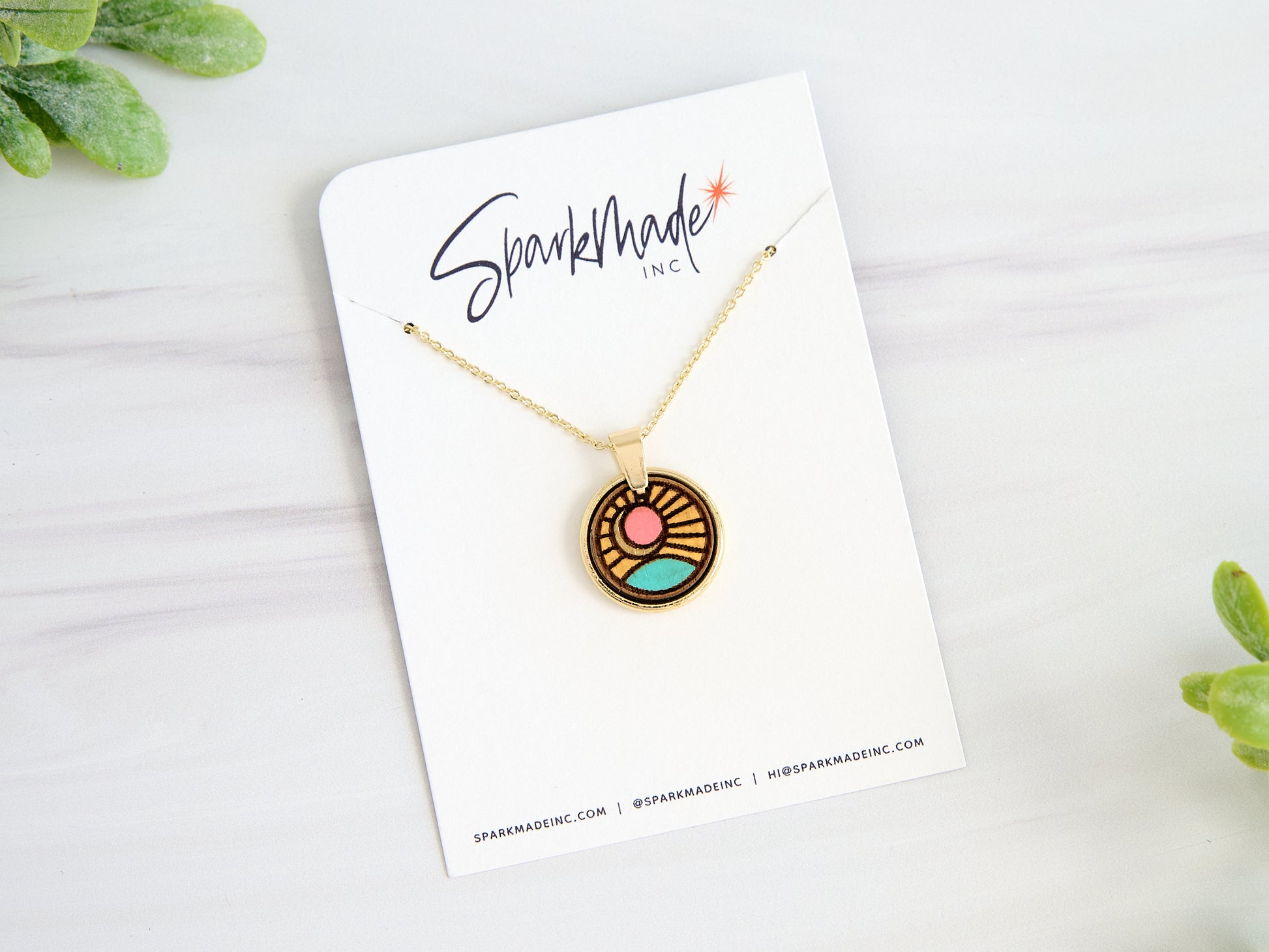 Introducing our beautiful Sunshine Hand-Painted Pendant! Crafted with meticulous attention to detail, this pendant features a radiant sun design, hand-painted with vibrant hues that capture the essence of a bright summer's day. The pendant is adorned with a 14k gold plated bail, adding a touch of elegance to the piece. To further enhance its allure, a decorative gold frame ring elegantly encircles the pendant, showcasing the artistry and craftsmanship that went into its creation. Perfect to wear on any occasion, this pendant effortlessly combines art and style, bringing a ray of sunshine wherever you go. Embrace the warmth and joy of the sun with our Sunshine Hand-Painted Pendant.
